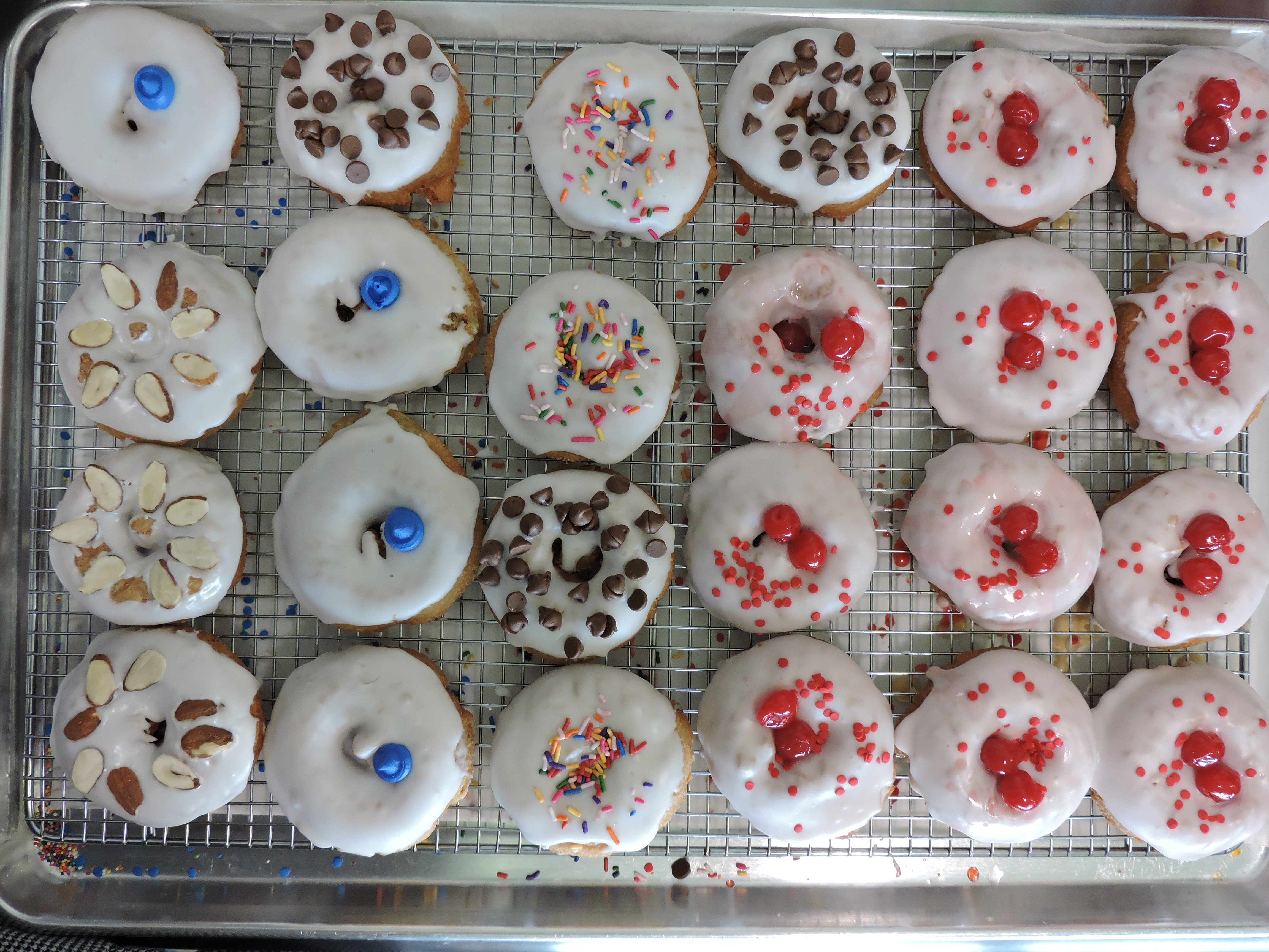 Accustomed to an 80-quart floor mixer, I had to compromise to an 8-quart tabletop model. The substitute for the cavernous donut fryer would be a funnel cake fryer, designed for concession stands. We needed refrigeration, but not too much, and opted for dorm-sized fridges; one for sandwich prep, and one for beverages.
