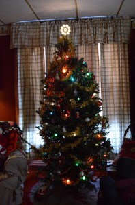The big C-9 lights are up on the arches of the front porch, and the little Lantern Bear has donned a Santa hat. Inside, rooms become inundated with reds and greens. Table runners and tablecloths and place mats in themes of Christmas. The stockings are hung in the parlor. On Monday, son-in-law Kenyon would deliver the tree, and our late start on the holiday is well underway.