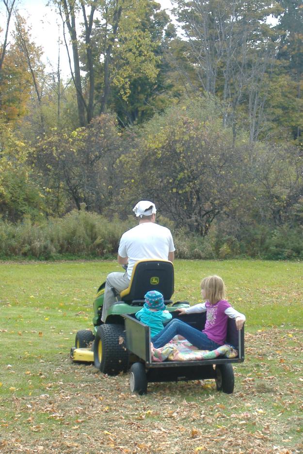 It toted around, in its little garden wagon, my own kinder garten consisting of all six grandchildren born during its tenure. It was driven (and perhaps borrowed) by one of the sons originally slated to grow into a pushmower job, as he toted his own children around the heaping pile at our annual Leaf Pile Party. It was a go cart for tween girls and teen boys, and raced about at top speed, even in the snow.
