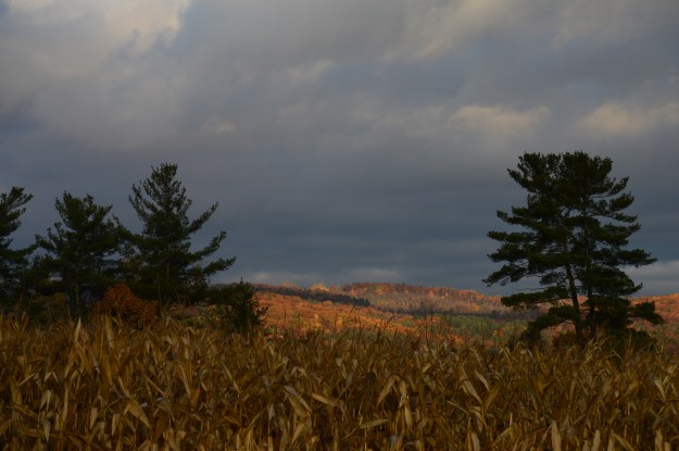 We can know by the ag trucks with their fat tires, hauling open loads of silage from the cornfields, the bits blowing all about, drifting and floating in the air and on the road, a premonition of that famous winter precipitation. (We can’t use the “S” word yet.) By the stripped and bare fields, devoid of green and crops, an occasional corn stalk standing silent, lonely vigil for the passing of comrades.